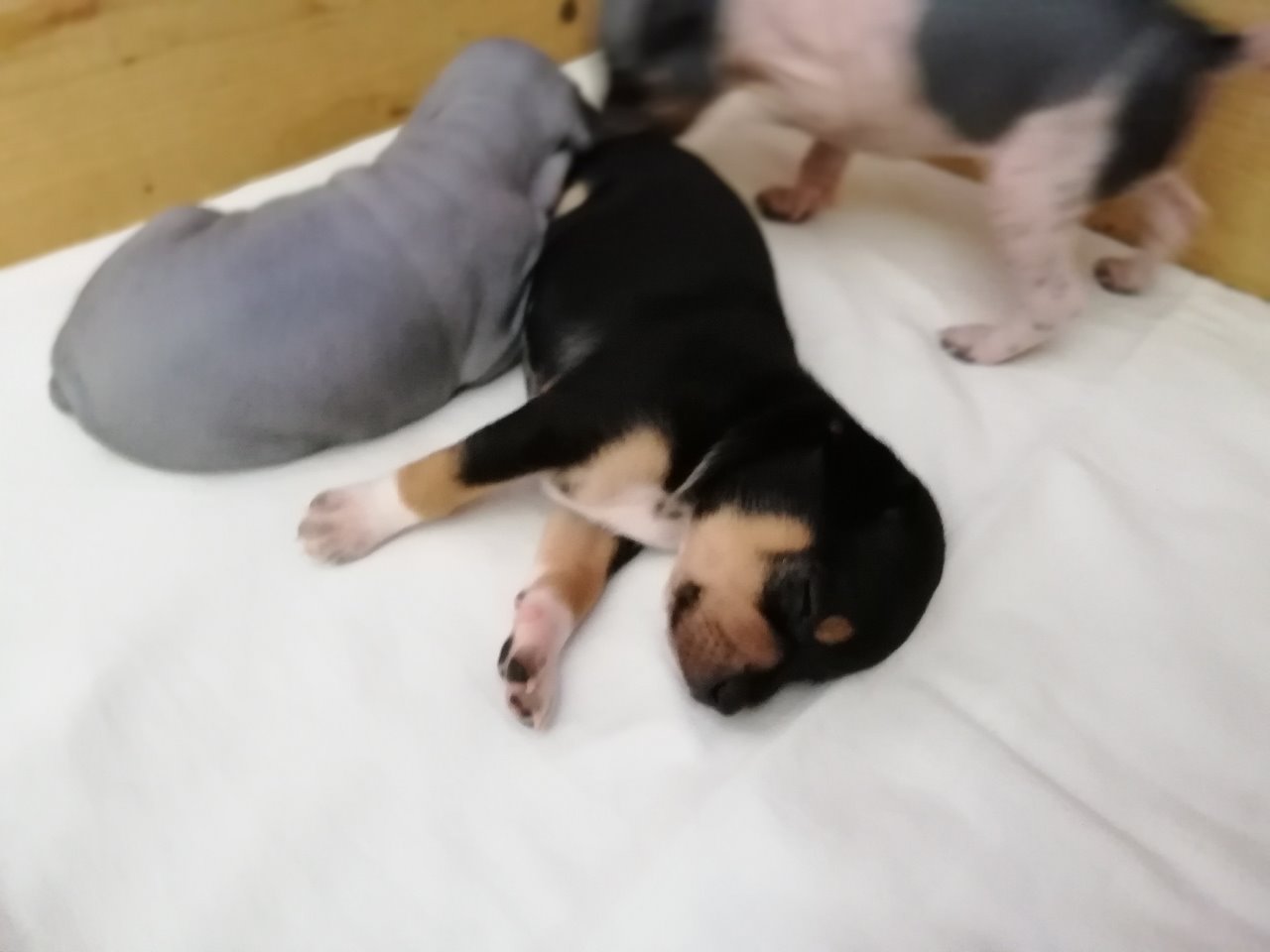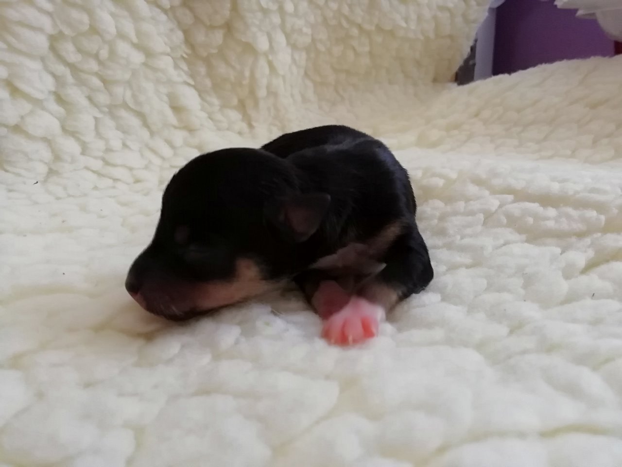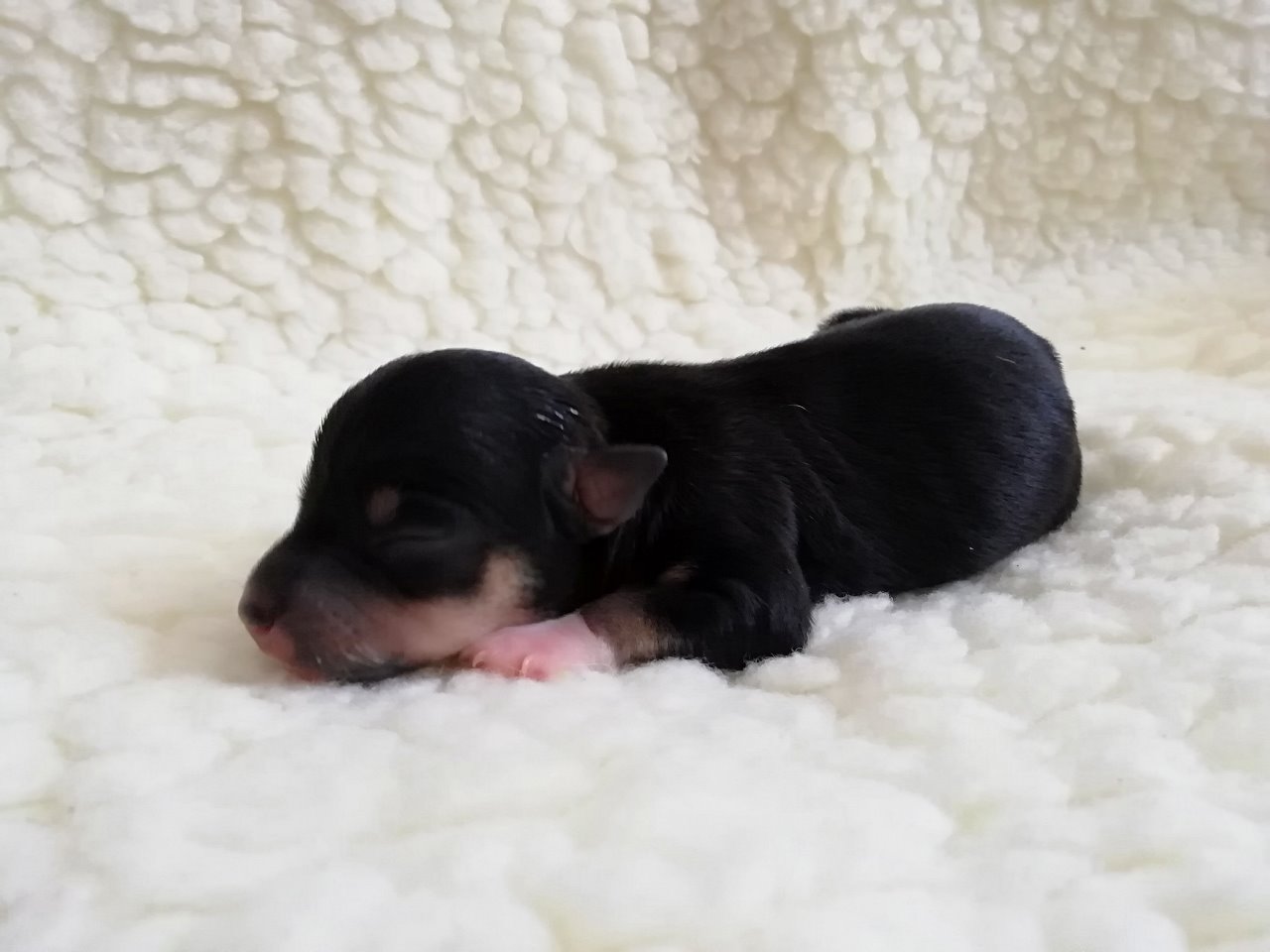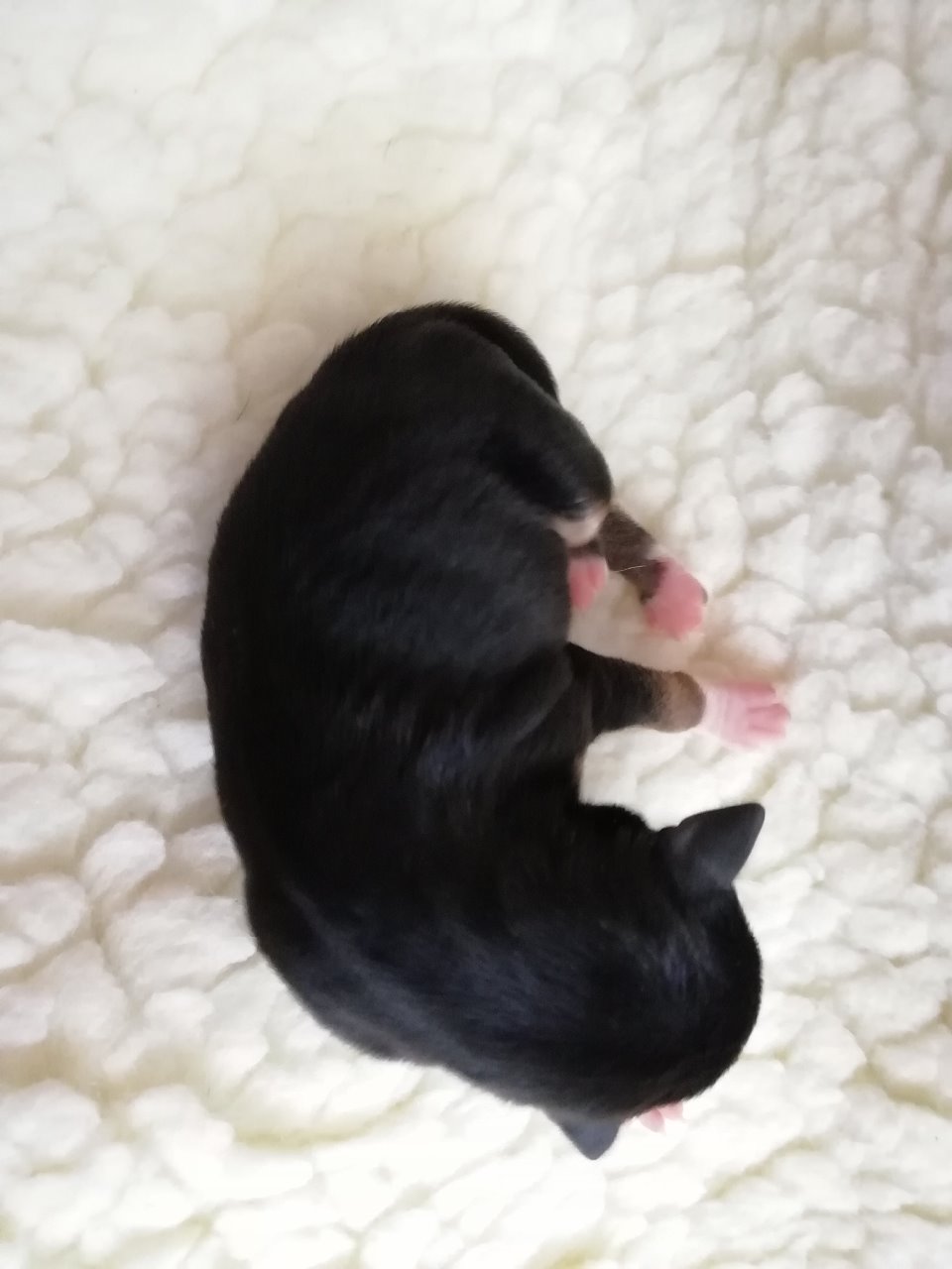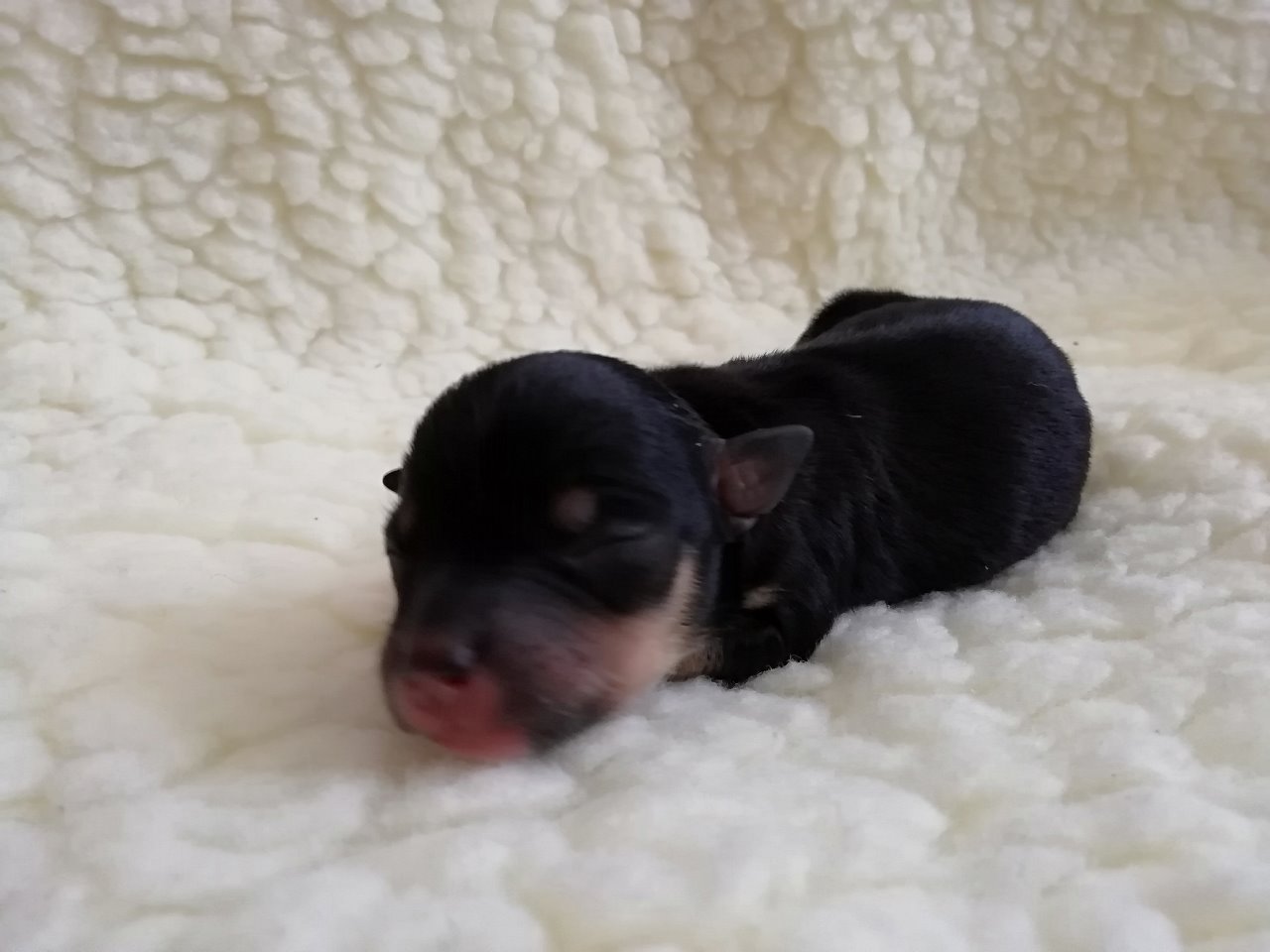 fena: černá s bílými znaky a pálením; osrstěná