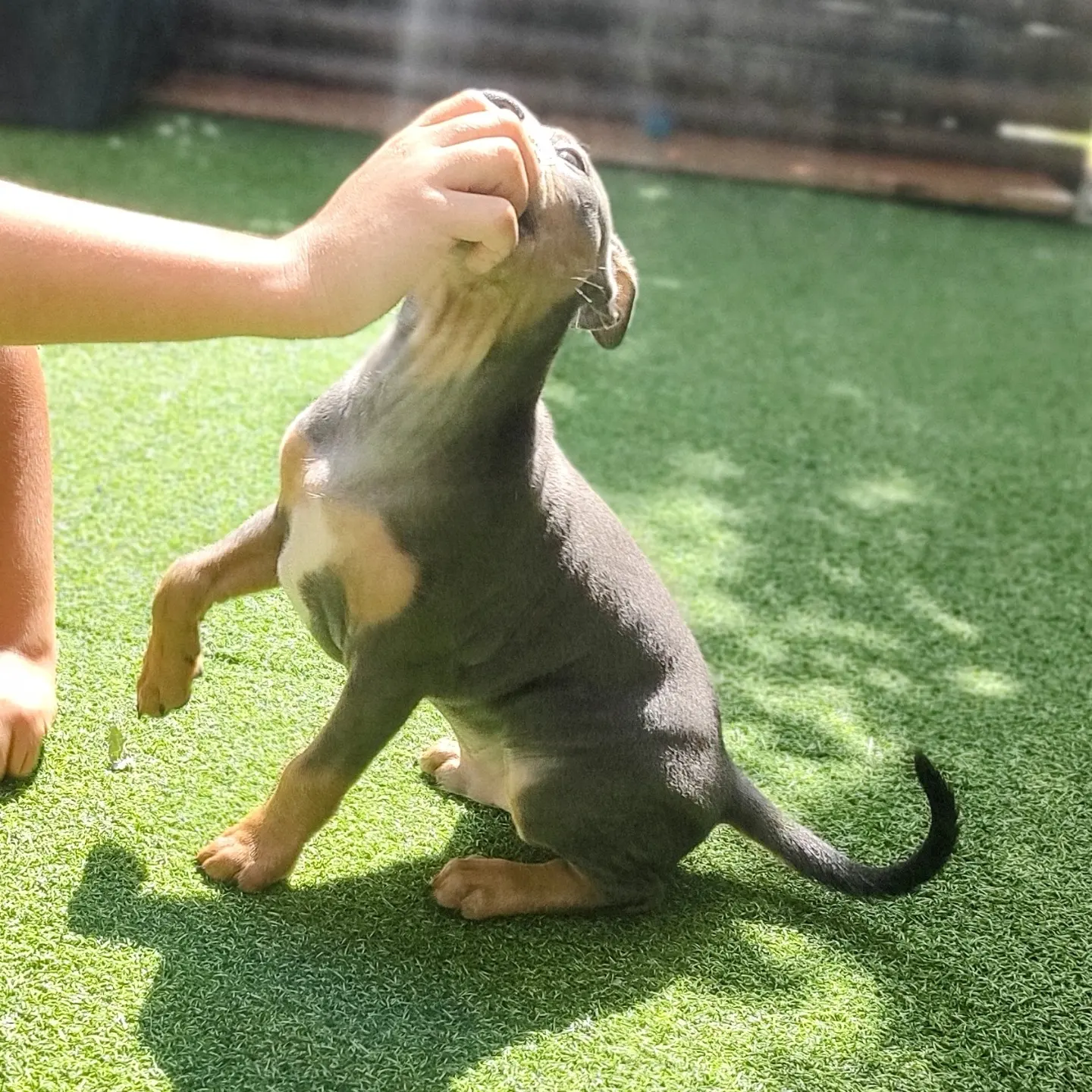 Barva : Modrá, pálení, bílé znaky - osrstěný